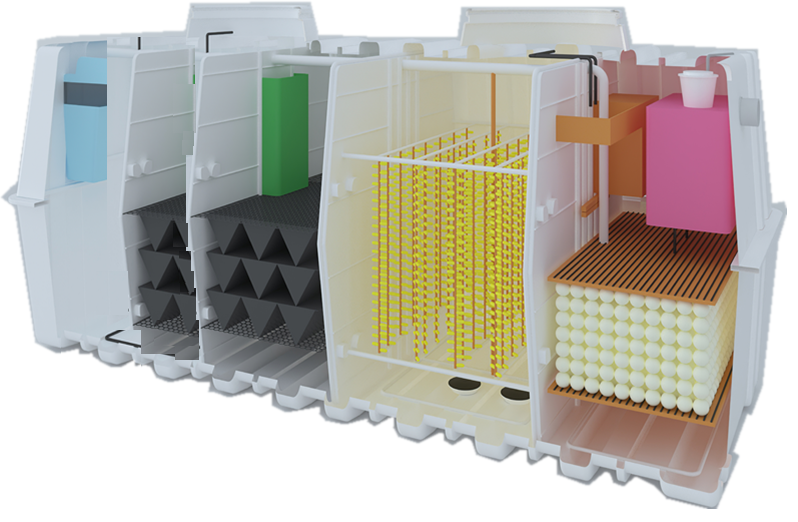 農(nóng)村散戶型一體化污水處理設(shè)備,出水標(biāo)準(zhǔn)可達農(nóng)田灌溉標(biāo)準(zhǔn)、部分指標(biāo)一級A標(biāo)和主要指標(biāo)一級B標(biāo)三種規(guī)格。箱體采用SMC模壓一次成型制造工藝,質(zhì)量穩(wěn)定,設(shè)計使用壽命可達30年。